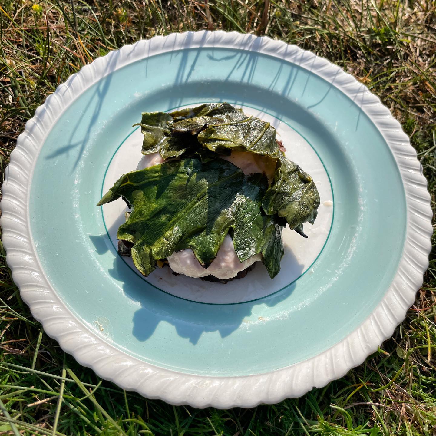 Smoked mackerel smørrebrød, topped with smoked and pickled Beach cabbage.