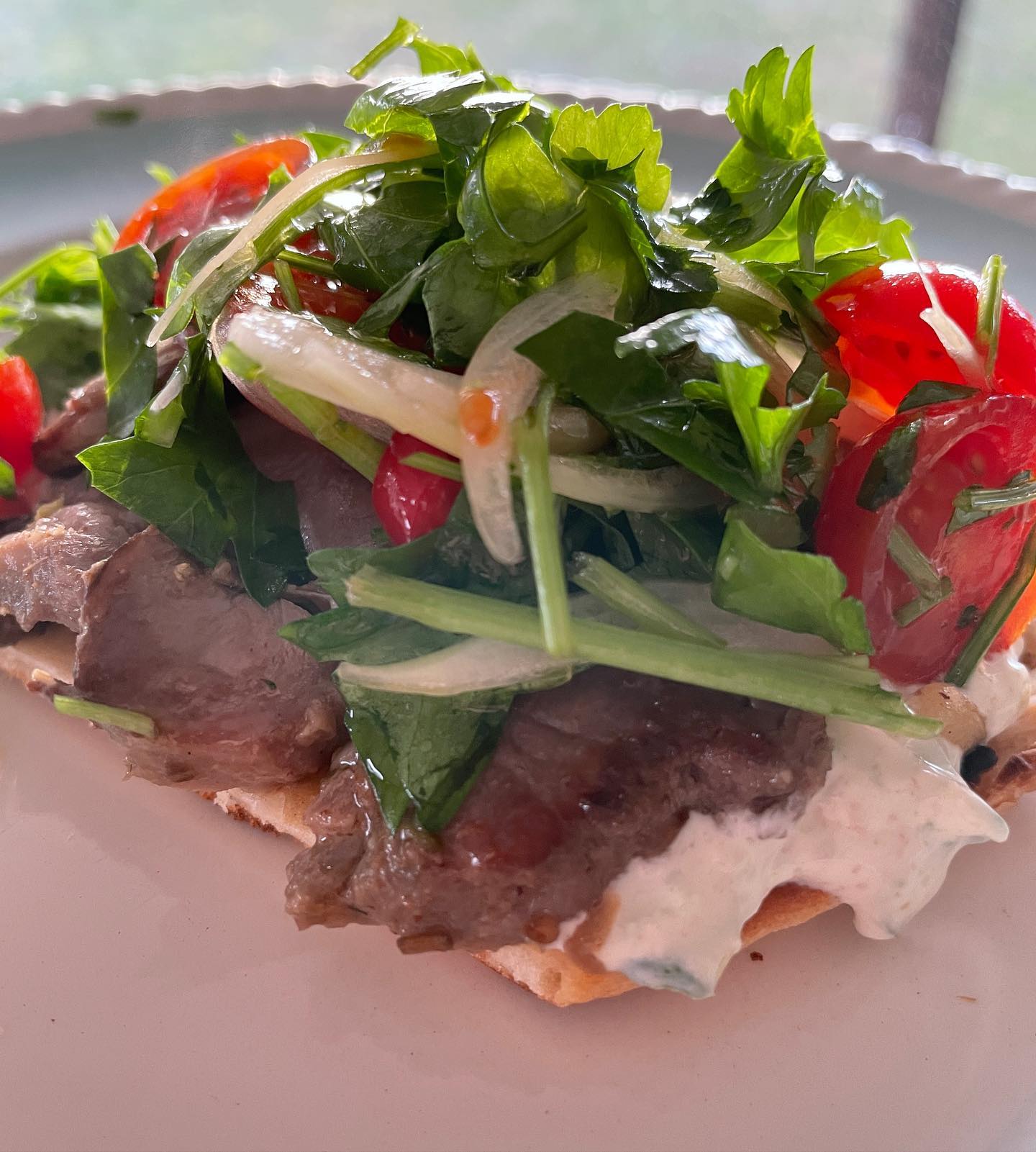 Leftover lamb, with homemade flatbread, tzatziki and parsley salad