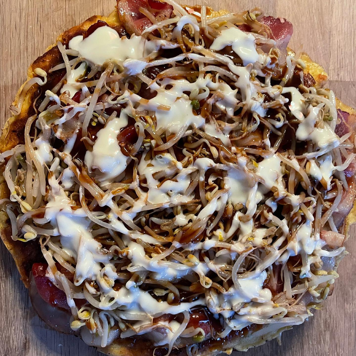 Leftover day, makes a great improvised Japanese Okonomiyaki