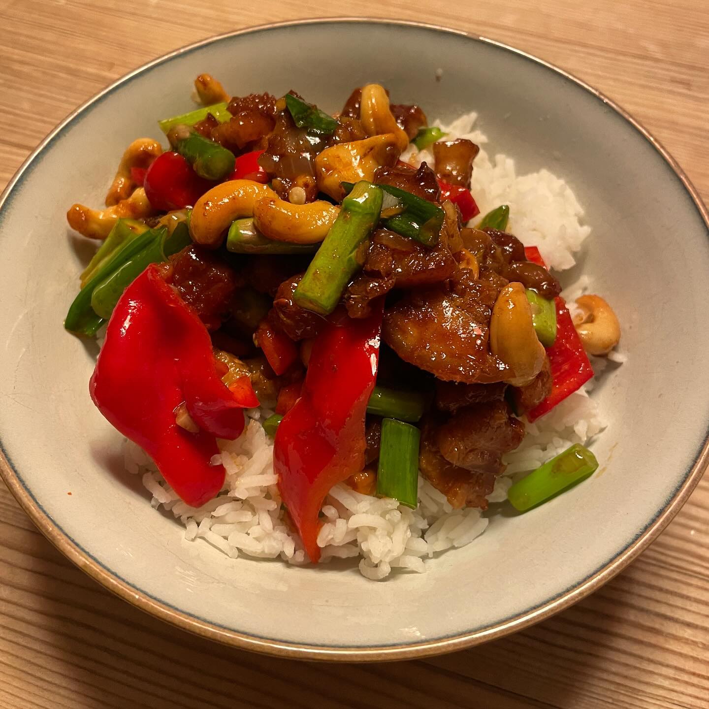 Crispy pork belly, cashew stir fry