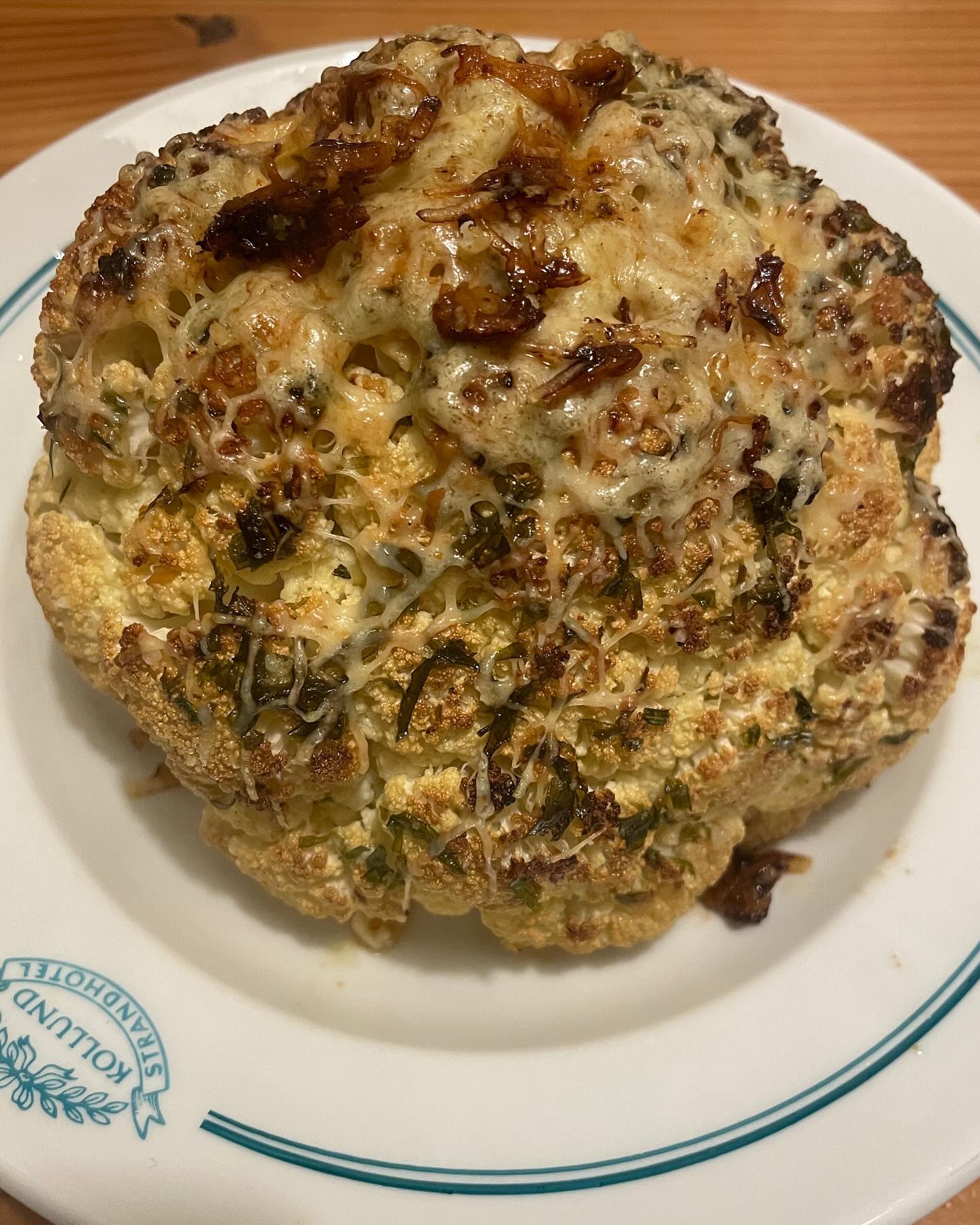 Whole roasted cauliflower, brown butter, tarragon and aged cheese. flower